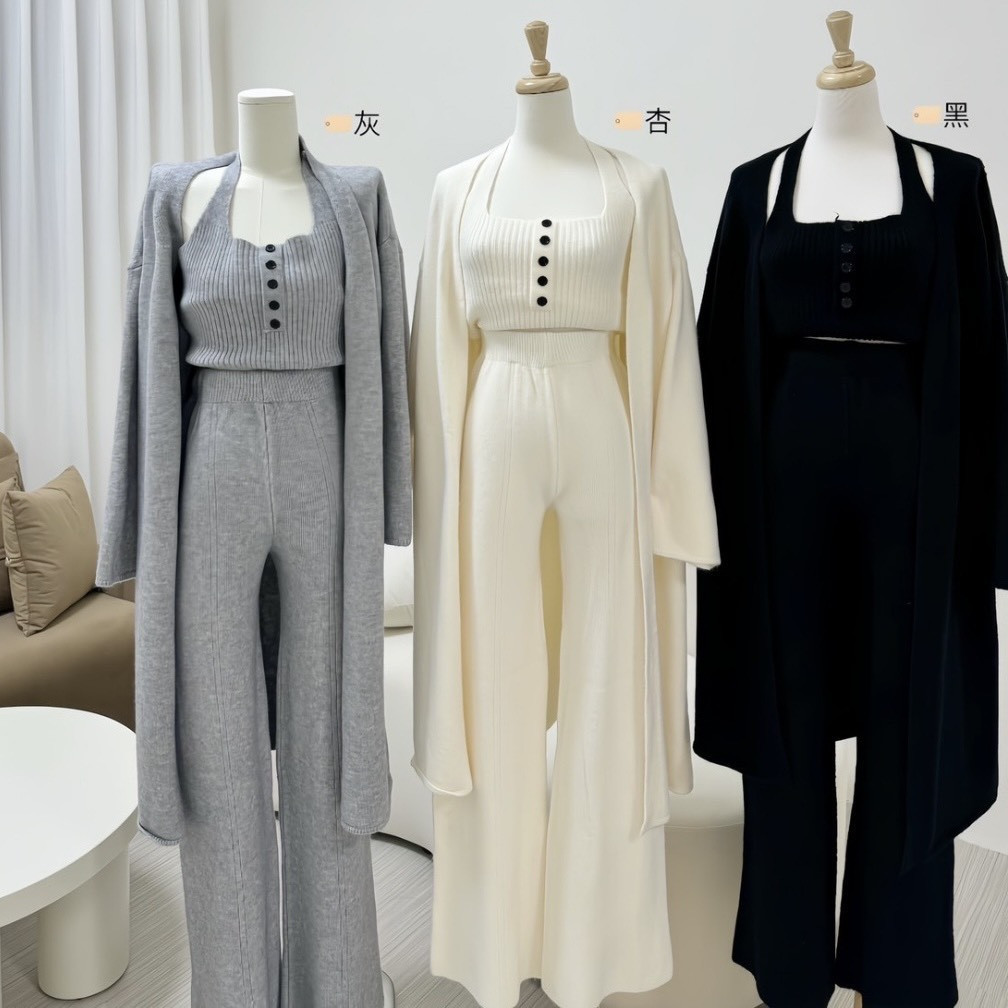 #3922重磅棉羊絨|日常穿搭繞脖背心+寬褲+長版外套Set